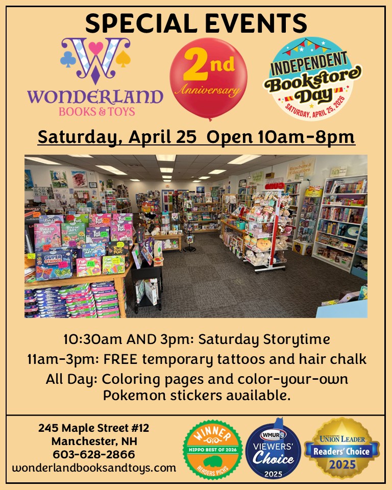 Manchester’s only children’s book and toy store is independent, locally, Hispanic, and woman-owned with products for infants through teens and young adults.